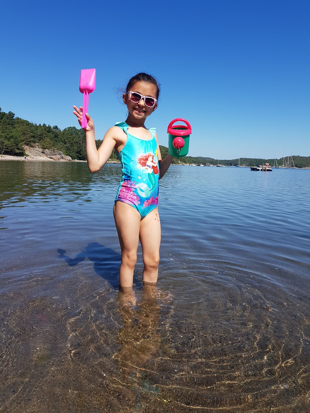 I dag vil jeg dele med dere noen bilder fra fredag, da vi dro til denne vakre og koselige stranden (Trubervika). På denne dagen var temperaturen 30 grader, og det var veldig koselig å sole seg og leke med barna.